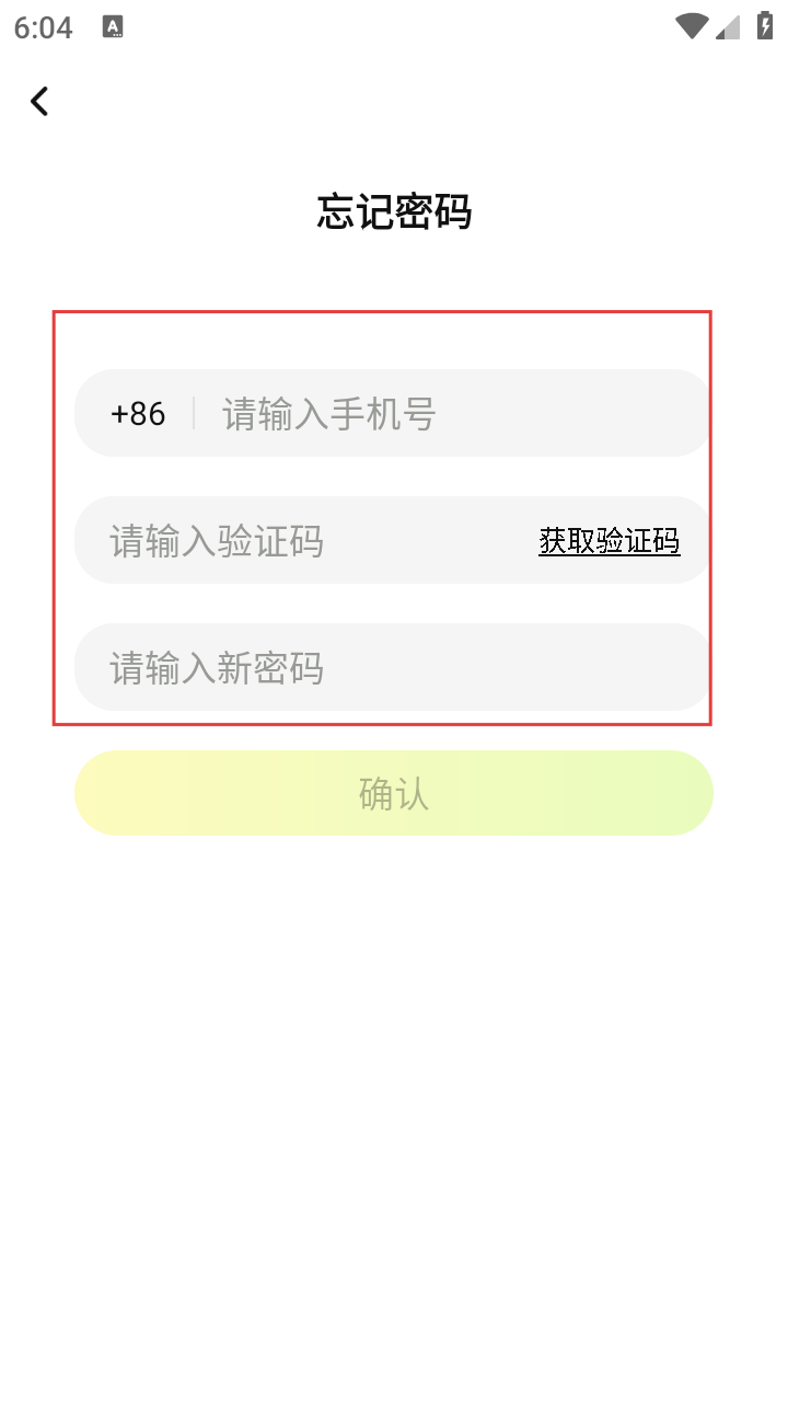 3、在忘记密码页面,依次输入手机号、验证码和新密码,准备重置密码。