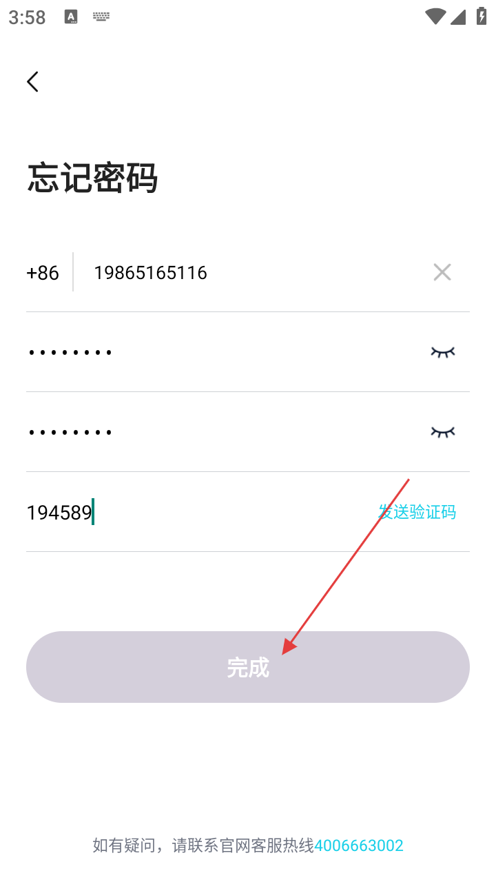 4、填写好所有信息后,点击【完成】按钮,即可完成密码重置操作。