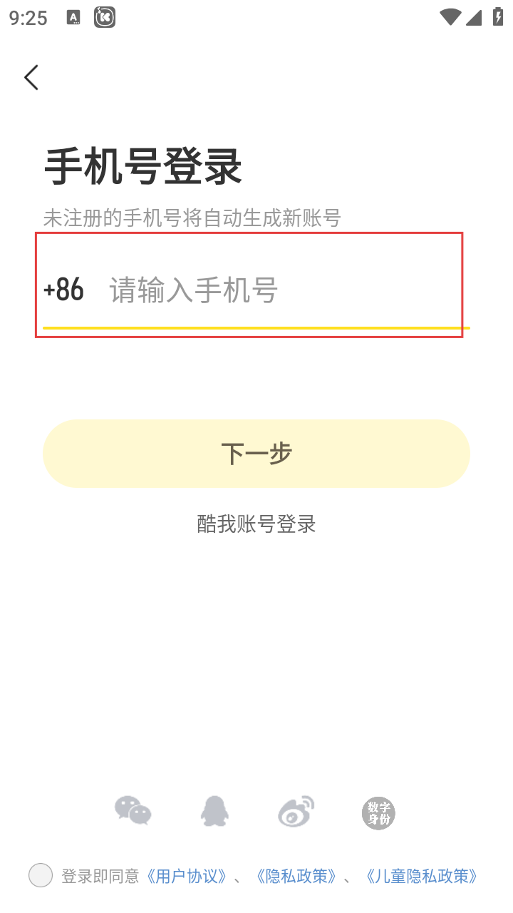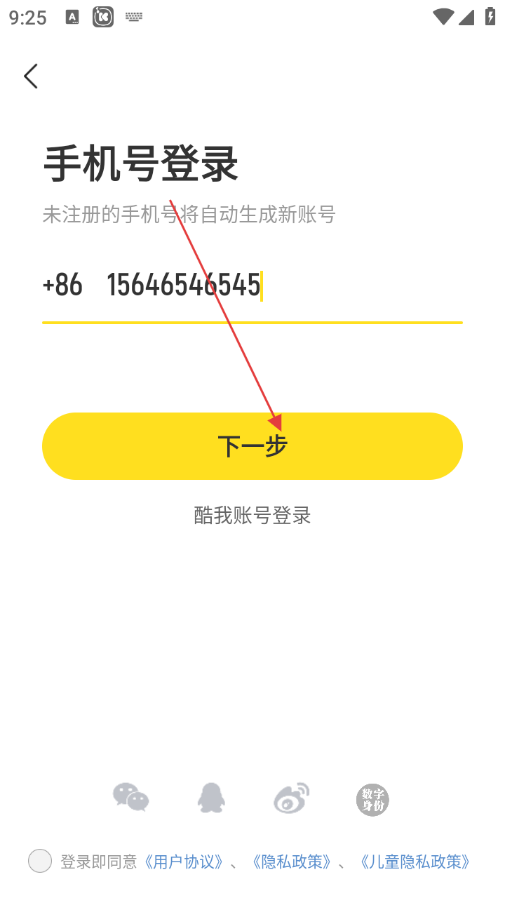 4、输入手机号码后,点击【下一步】按钮,按照后续提示操作,即可完成酷我音乐的登录流程。
