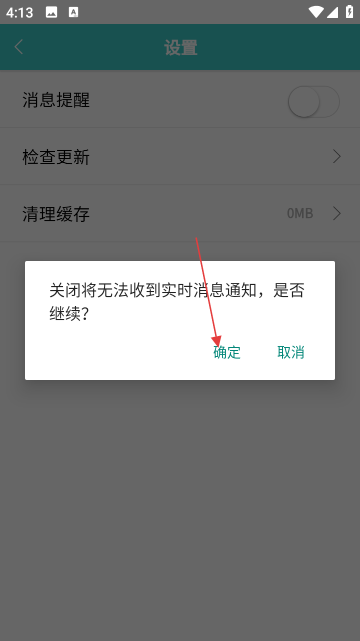4、关闭【消息提醒】时,会弹出确认框,点击【确定】则关闭成功,关闭后将无法收到实时消息通知。