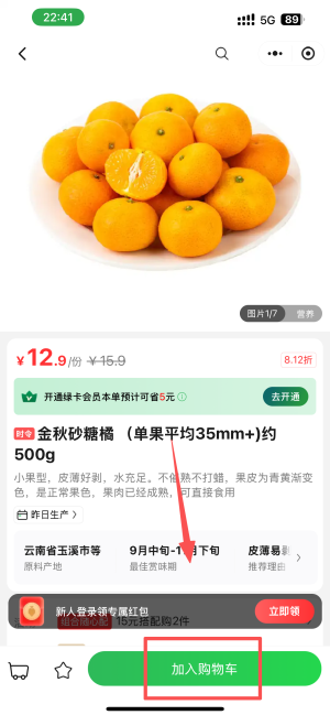3、在商品详情页点击“加入购物车”将商品添加到购物车。