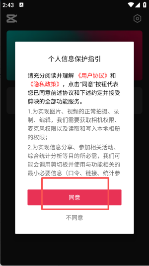1、阅读并同意个人信息保护指引,点击“同意”按钮。