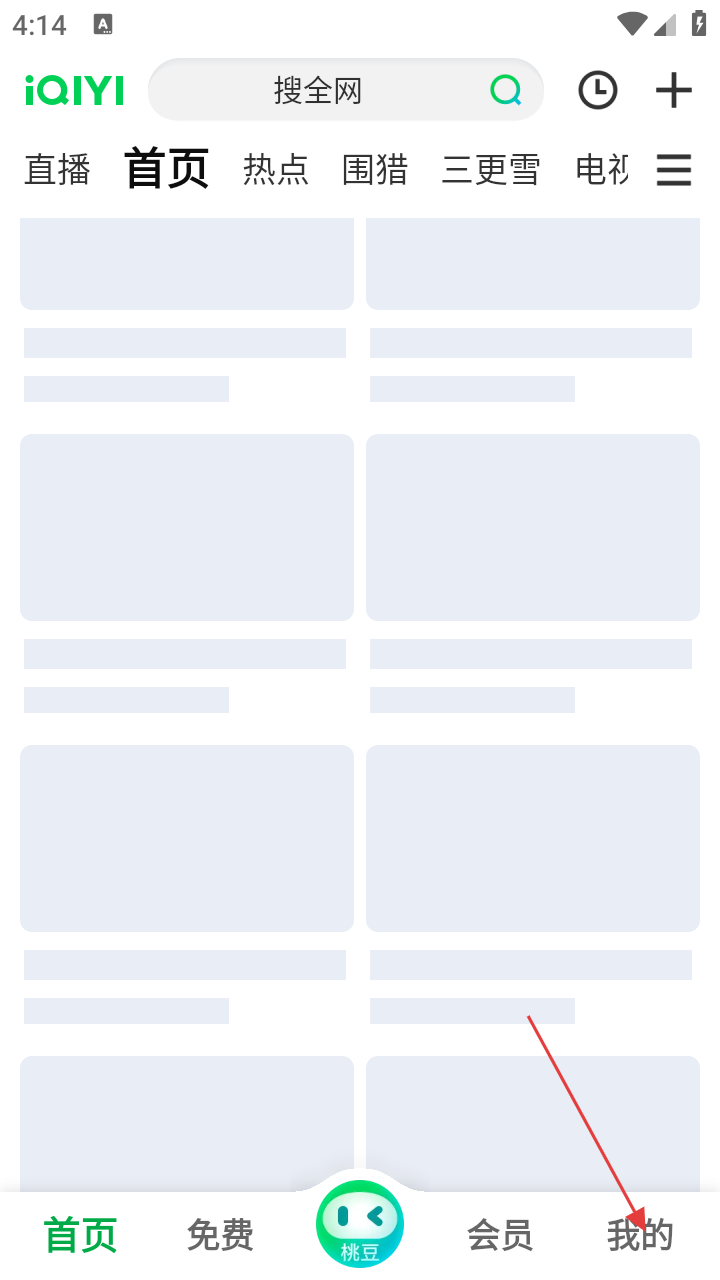 1、打开爱奇艺APP,在首页可浏览各类内容,点击右下角【我的】进入个人页面。