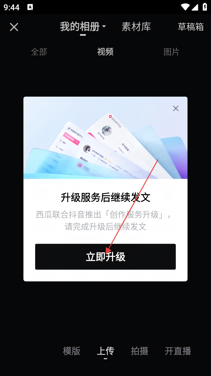3、若弹出“升级服务后继续发文”提示框,点击【立即升级】,完成服务升级。
