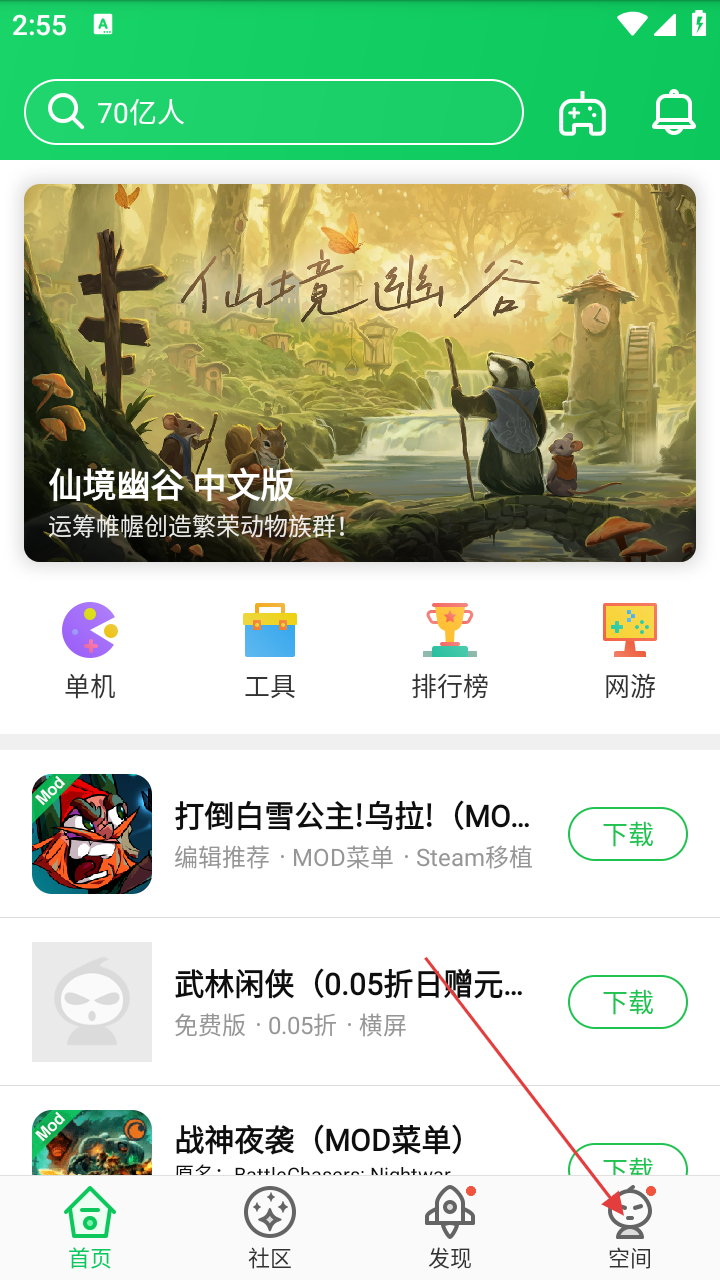 1、在软件首页,点击底部【空间】选项,可进入个人空间页面。