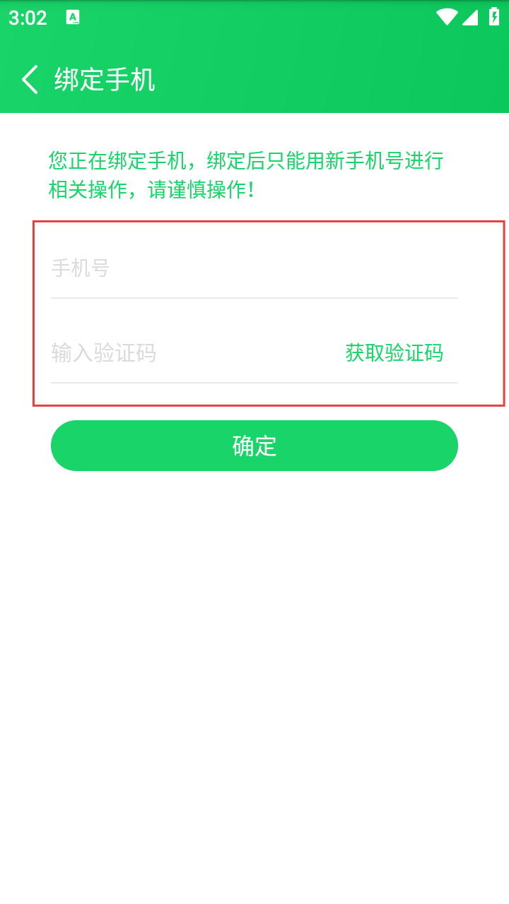 4、在绑定手机页面,输入手机号并获取验证码,填写验证码后点击确定,即可完成手机绑定流程。