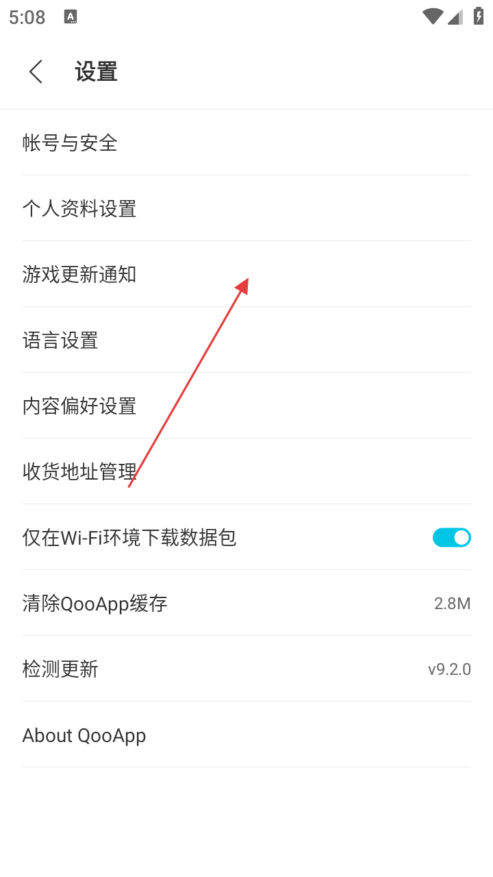 3、在设置页面,点击【游戏更新通知】选项,可进入游戏更新通知查看界面。