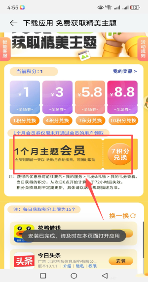 4、积分兑券区花7积分换1个月会员,记得次日0点后再用。
