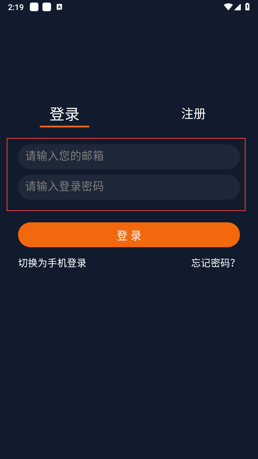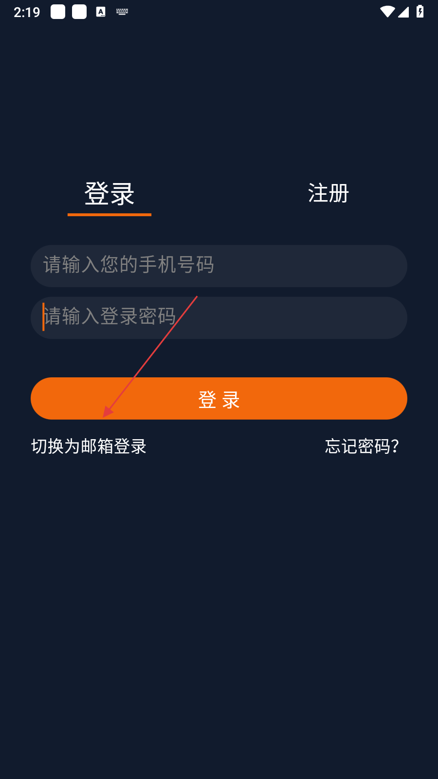 3、在登录页面,若不想用手机号登录,可点击【切换为邮箱登录】,切换至邮箱登录模式。
