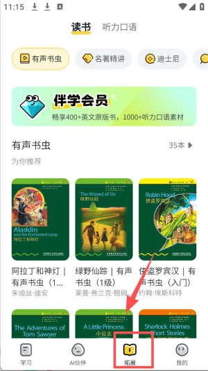 4、访问拓展内容,点击底部导航栏的“拓展”图标,浏览更多学习资源。