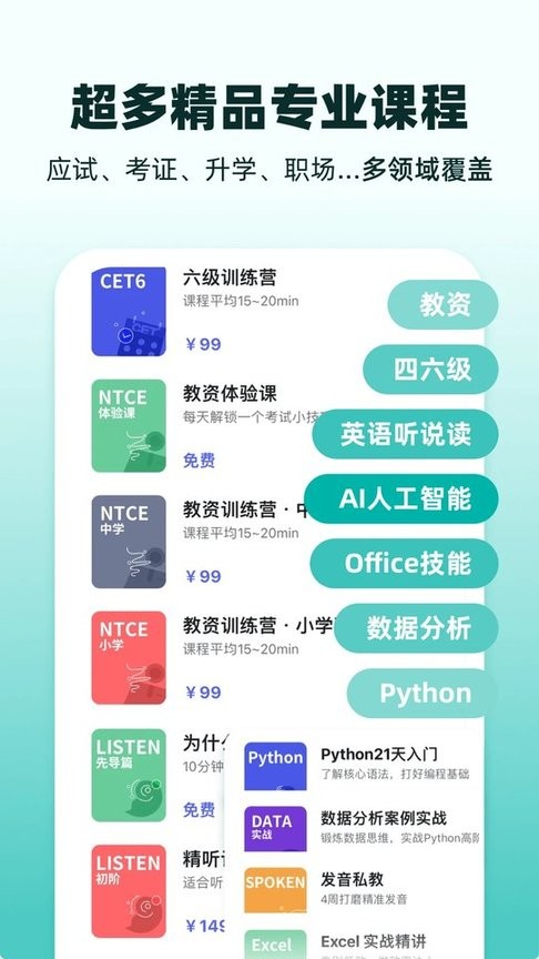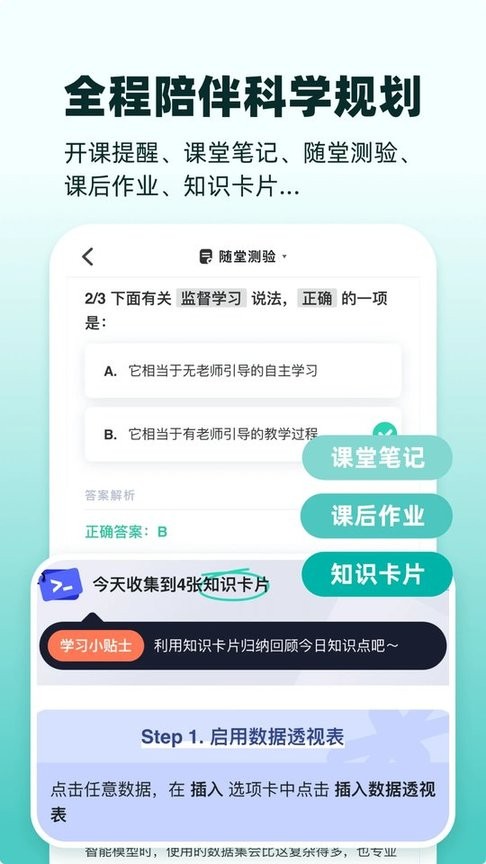 它是一种科学的教育教学理念,查看课程设置,下载学习资料等。通过看课表等信息,可以知道自己的作息时间,按时学习。突破了底线,成绩差,基础弱也没关系。