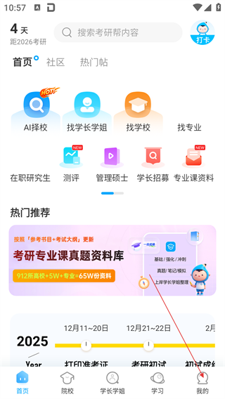 1、在考研帮主界面,点击底部导航栏的【我的】选项,进入个人中心页面。
