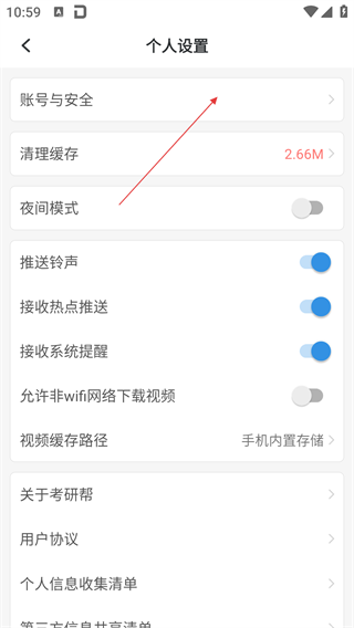 3、在个人设置页面中,选择【账号与安全】选项,进入账号安全管理页面。