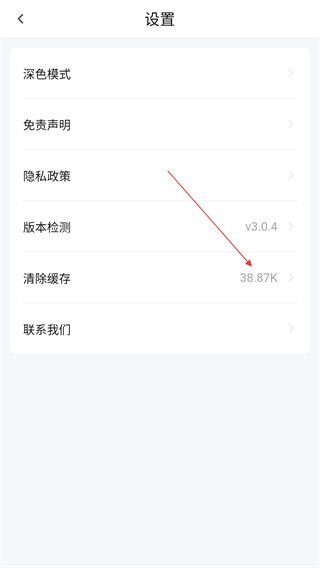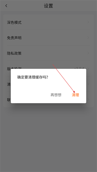 3、在【设置】界面,点击【清除缓存】选项,可触发缓存清理确认操作,优化软件运行空间。