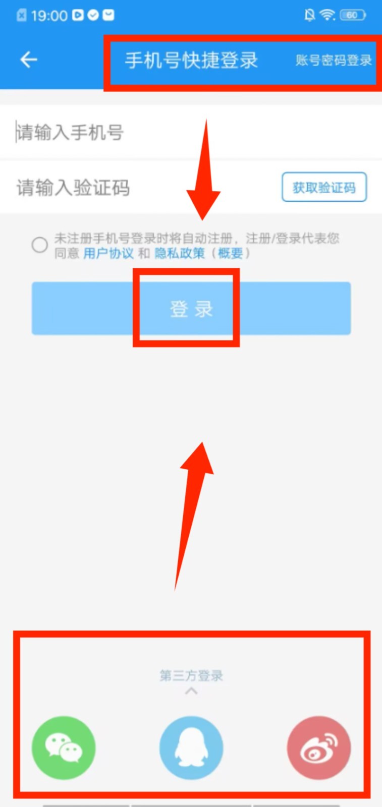 1、进入手机号快捷登录页面,填写手机号并获取验证码,勾选协议后点击 “登录” 完成账号验证。