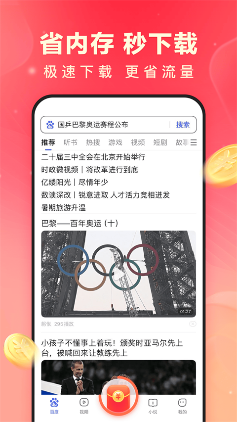 百度极速版是一款快速、高效的搜索应用程序,能够帮助用户更快速地获取到所需信息,同时还能达到省流量、省电汇总的效果。喜欢的朋友快来下载吧!