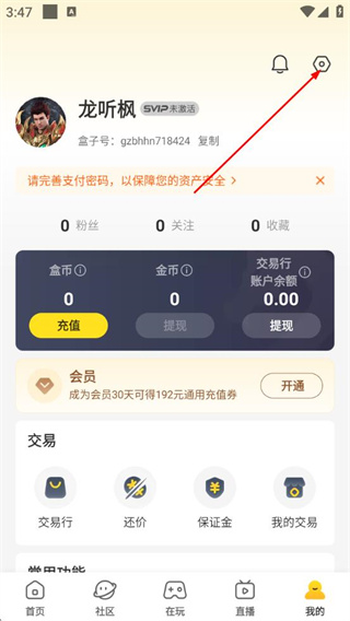 1、进入996传奇盒子后,点击底部【我的】,可进入个人中心页面,开启账号相关设置操作。