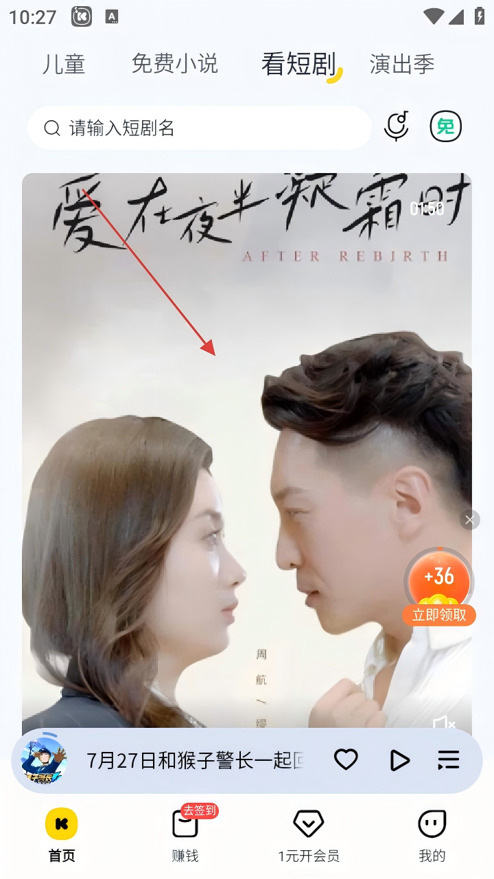 4、若想返回看短剧板块,再次在首页顶部点击【看短剧】选项,即可继续浏览短剧内容。