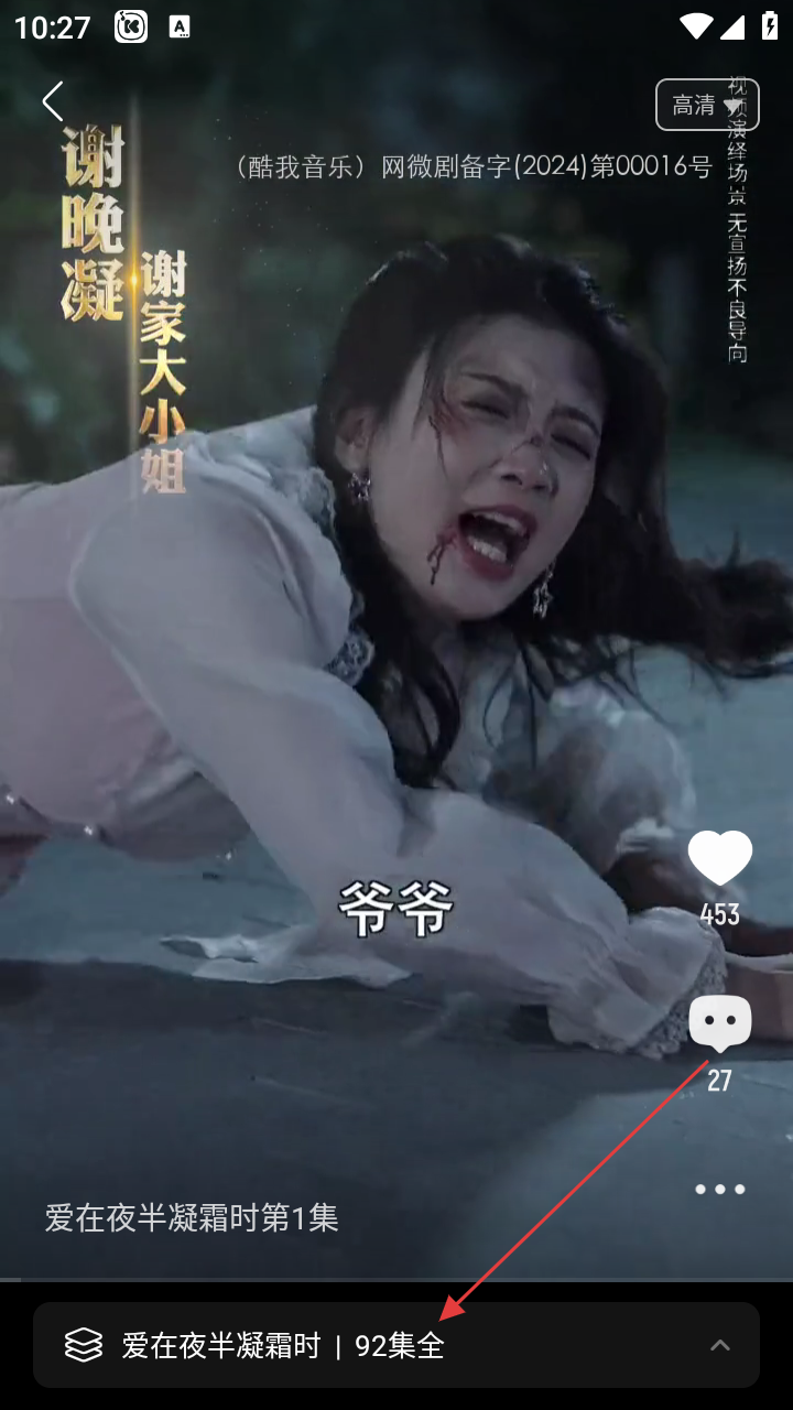 2、进入短剧播放页面,能看到《爱在夜半凝霜时》的播放界面,点击剧集列表按钮。