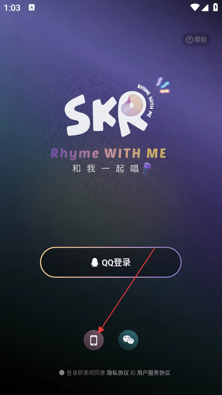 2、同意后,进入登录页面,点击手机图标进行手机号登录。