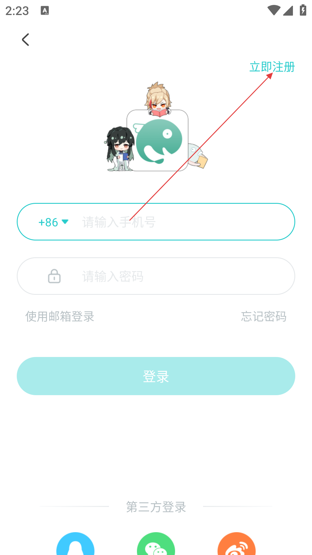 3、在登录界面点击右上角【立即注册】,进入手机号注册页面。