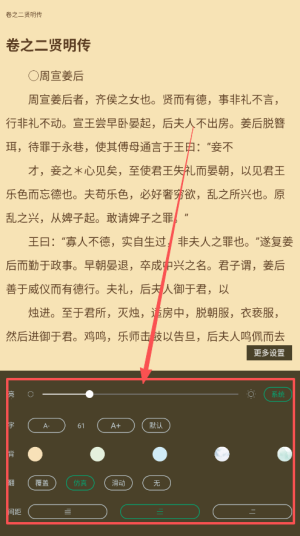 4、阅读设置选项允许用户自由调整界面背景和字体样式,打造最符合个人喜好的阅读环境,让您畅享无阻阅读乐趣。
