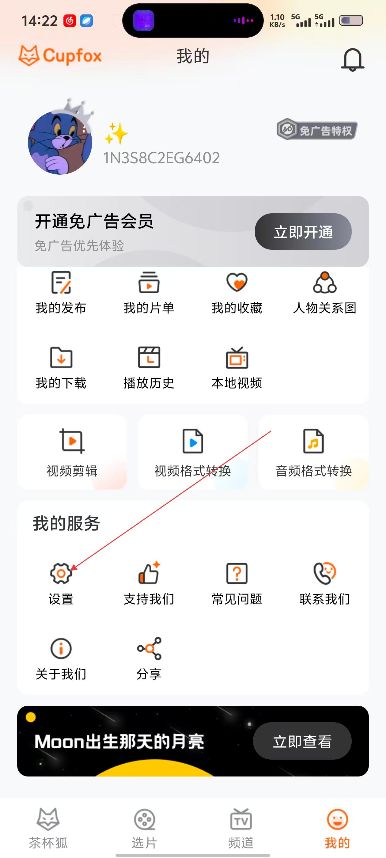 2、在【我的】页面点击【设置】选项,进入设置界面,找到下载设置入口。