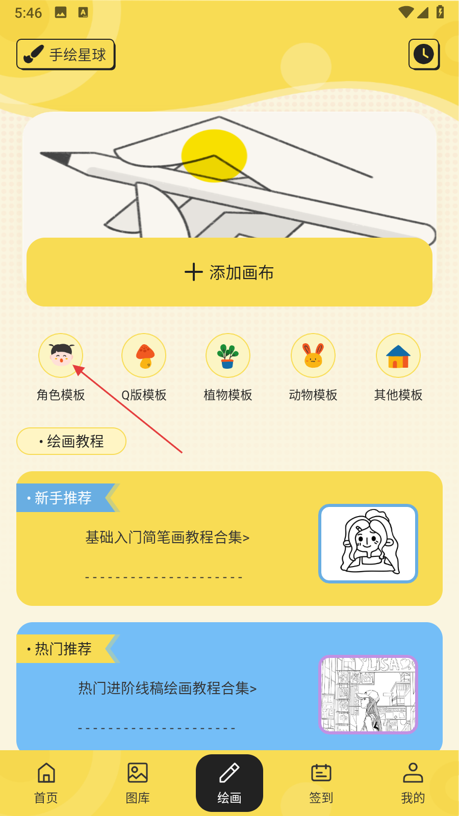 3、在绘画板块中,选择【角色模板】等各类模板,快速开启绘画创作。