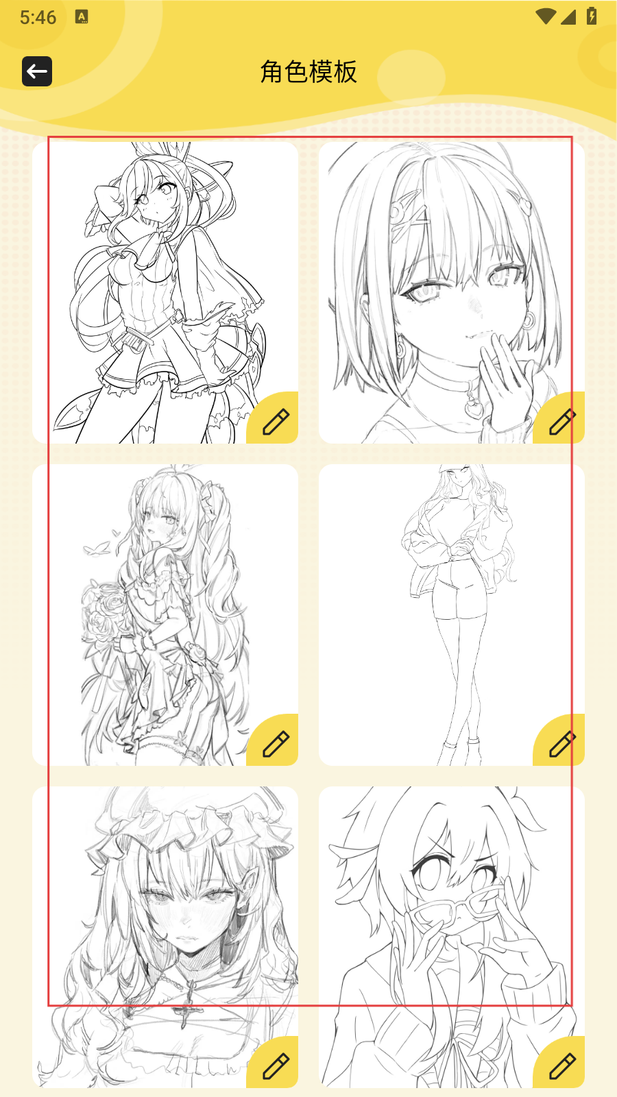 4、进入【角色模板】页面后,可选择喜欢的角色线稿模板,借助模板辅助完成角色绘画,提升创作效率。