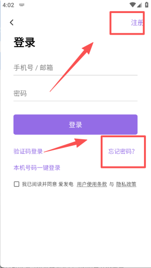 2、进入登录页面,可选择手机号/邮箱加密码登录,也可点击“注册”或“忘记密码”进行相应操作。