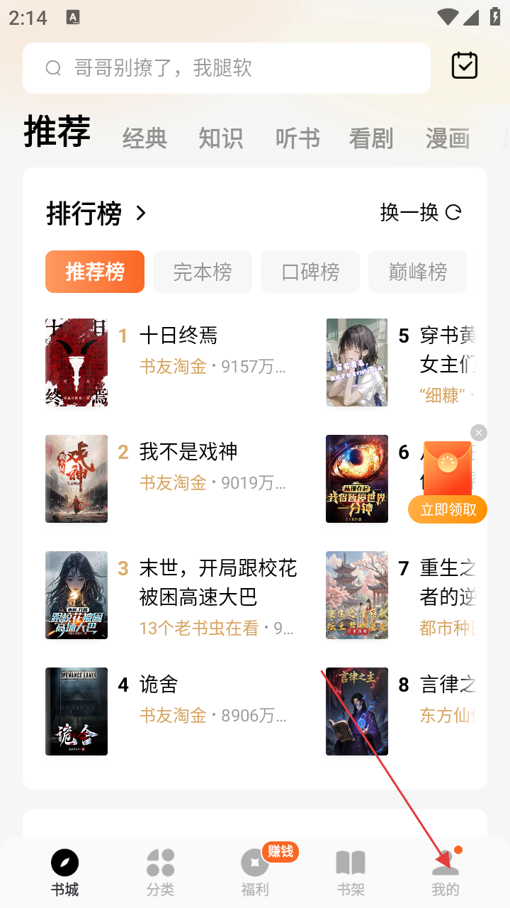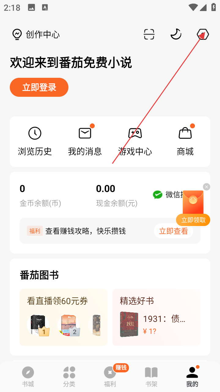 1、打开番茄免费小说,点击底部【我的】,进入个人页面。