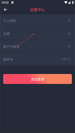 3、进入【设置中心】后,可操作【个人资料】【主题】等功能项,点击【主题】进入主题界面。