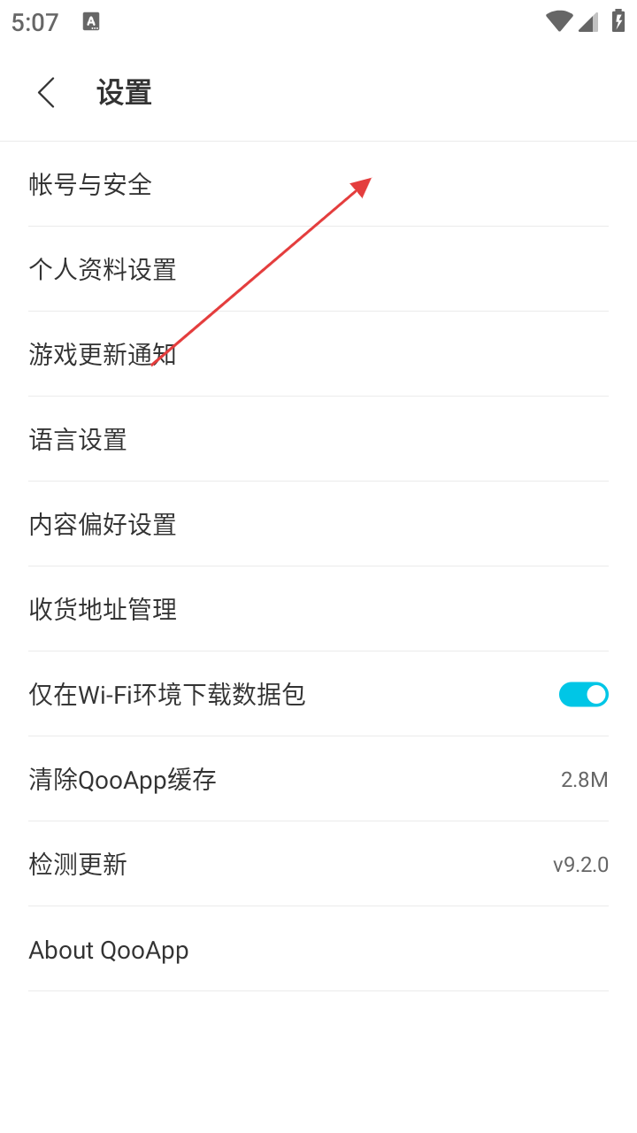 3、在设置页面,点击【帐号与安全】选项,可进入帐号安全相关设置界面。