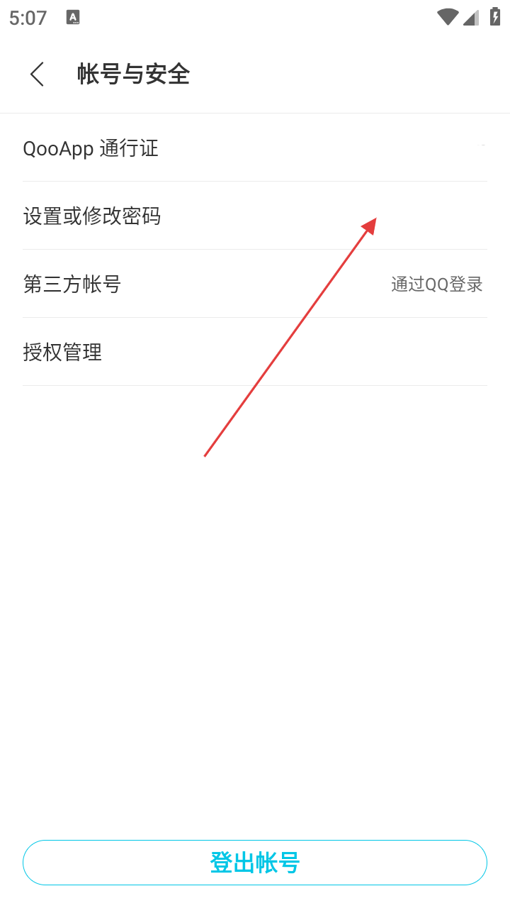 4、在【帐号与安全】界面,可进行【设置或修改密码】操作,也可查看QooApp通行证、第三方帐号等信息。