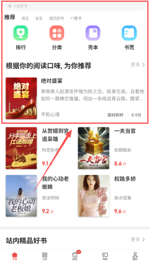 1. 推荐首页:追书神器提供推荐首页,展示热门小说、榜单排行、编辑推荐等内容,帮助用户快速找到热门好书;