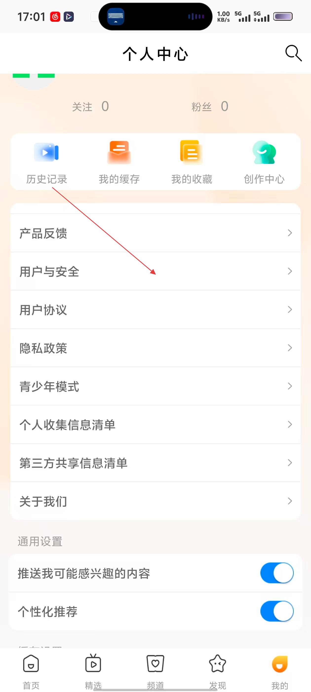 2、在个人中心界面,点击【用户与安全】选项,可进入账号与安全界面。