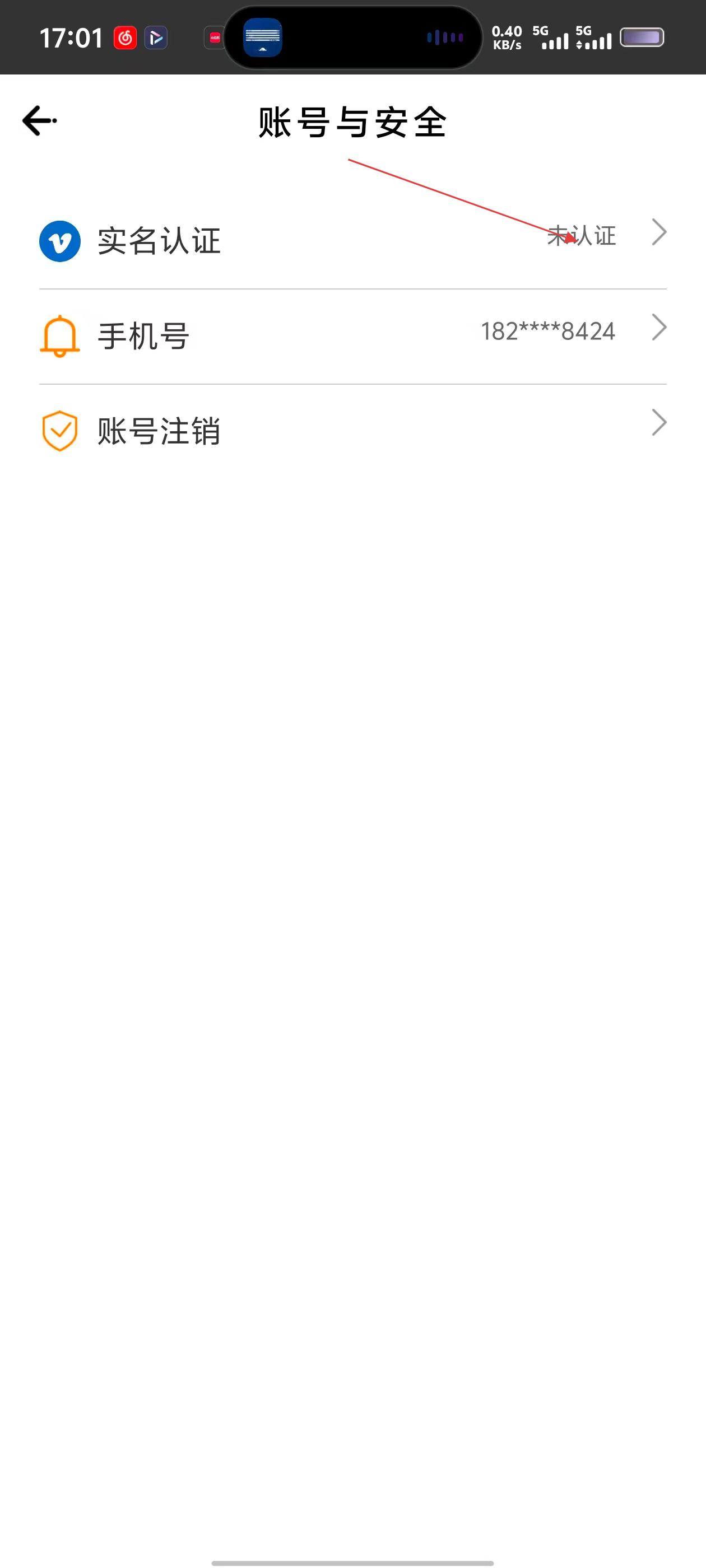 3、在账号与安全界面,点击【实名认证】,可进入实名认证界面。