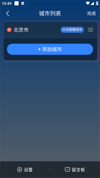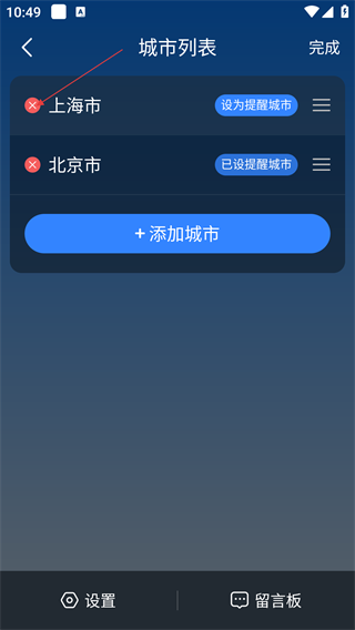 4、确认选中待删除城市后,系统将自动移除该城市,完成后点击右上角的【完成】按钮,退出编辑模式即可。