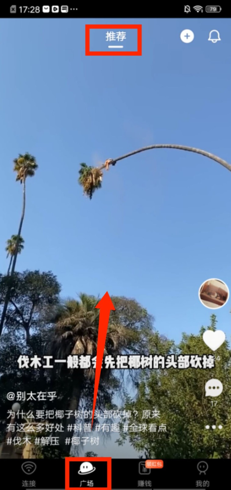2、切换到 “广场” 页面,在 “推荐” 分类下,能浏览各类资讯内容,参与互动交流。