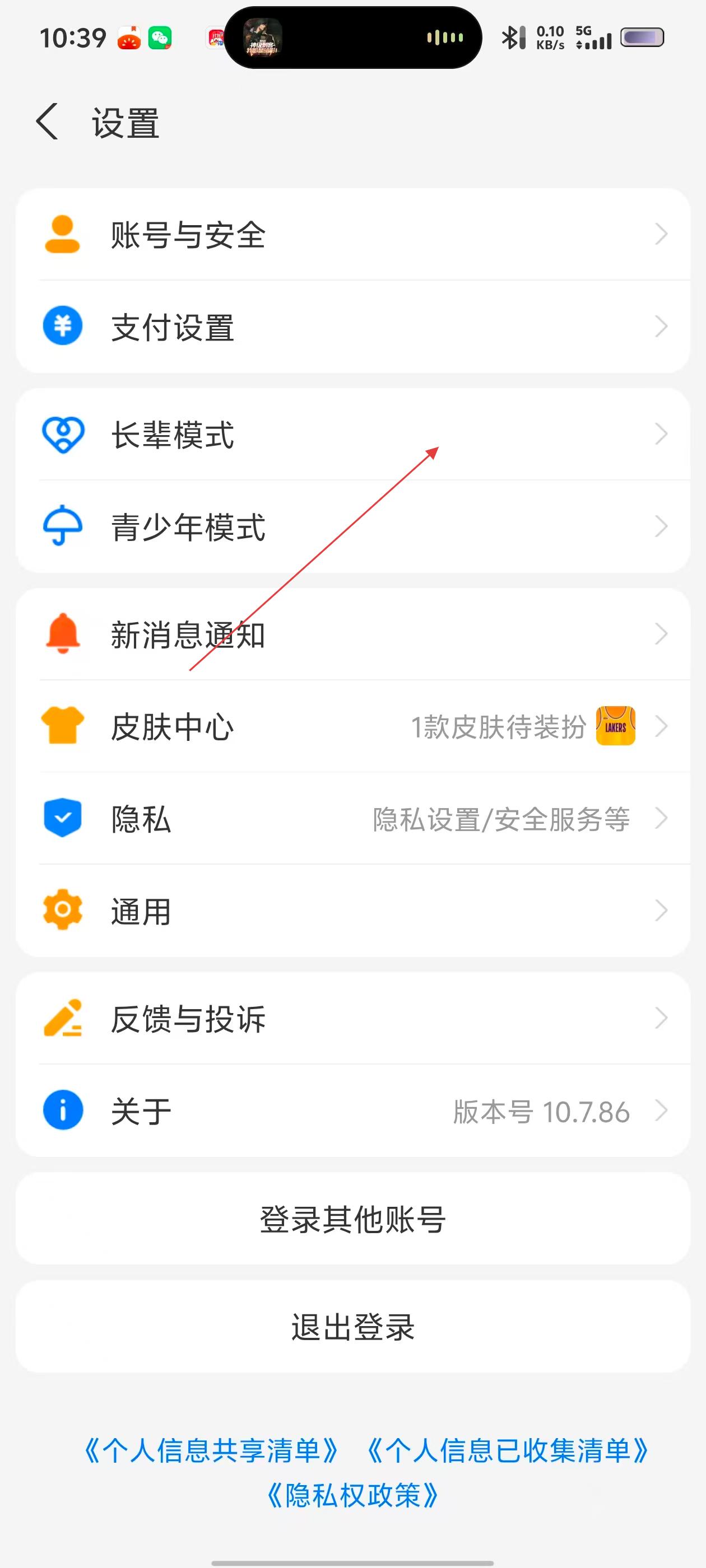 3、在设置页面,找到并点击【长辈模式】选项,进入相关设置流程。