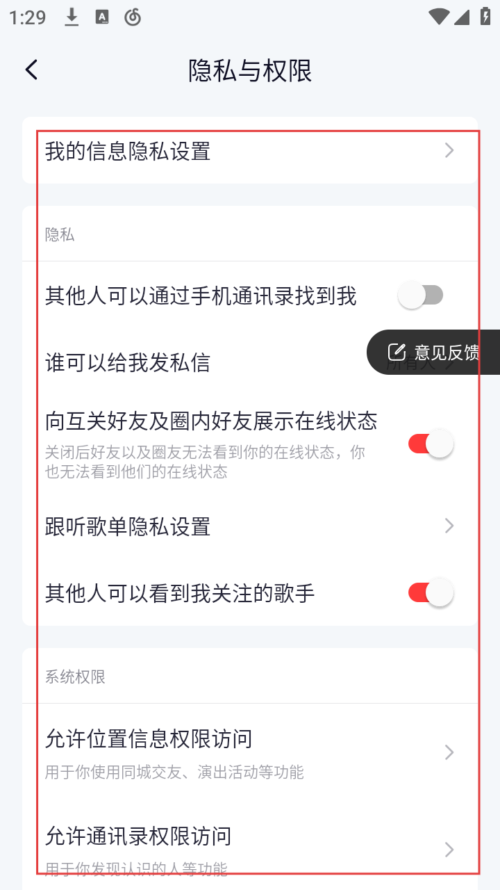 4、在隐私与权限页面,能设置我的信息隐私、他人能否通过通讯录找我等多项隐私权限。