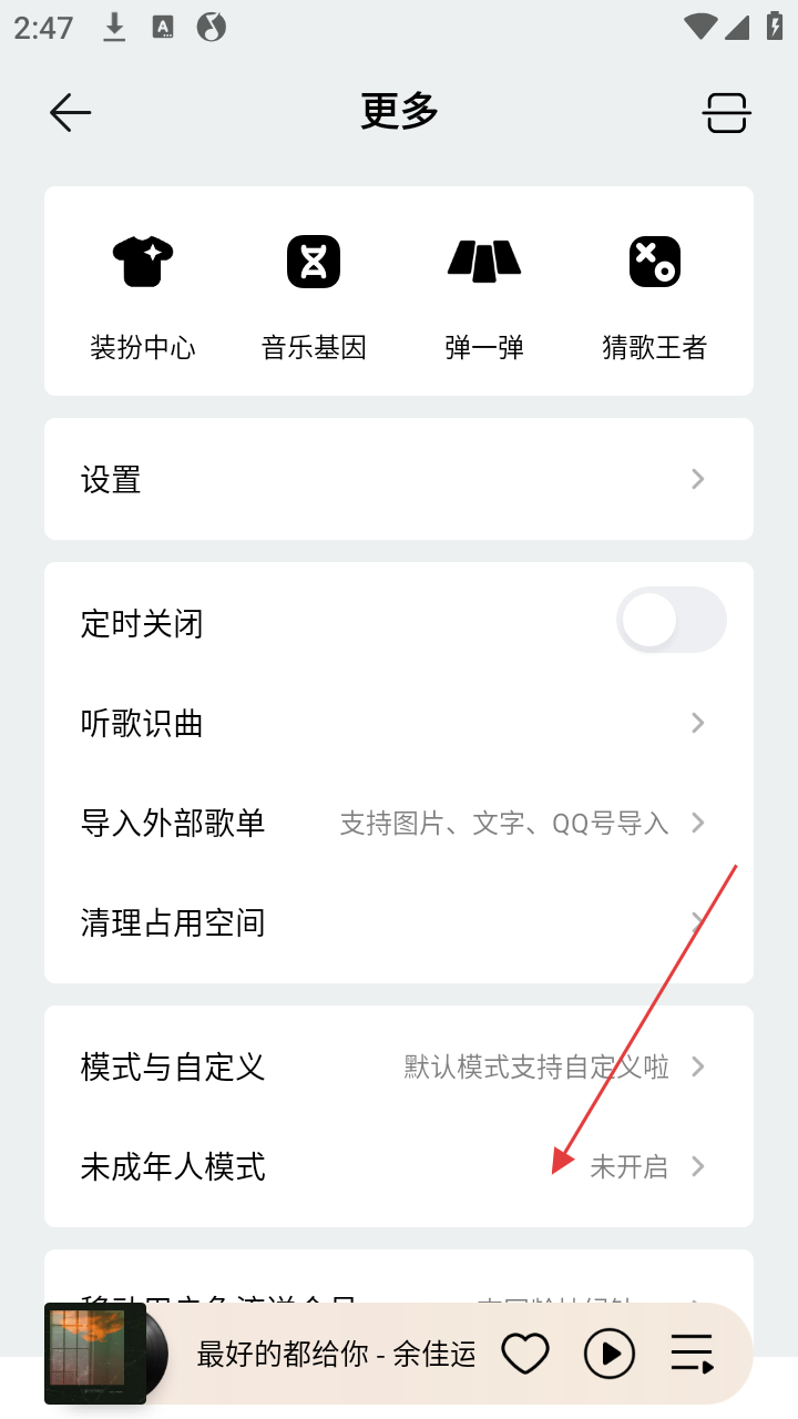 3、进入更多功能设置页面,找到并点击【未成年人模式】选项,进入未成年人模式相关页面。