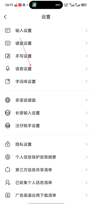 3、进入设置界面后,找到【语音设置】选项,点击进入可对语音相关功能进行个性化设置。