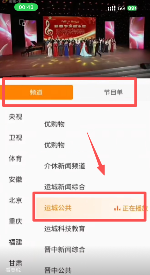 3、点选频道后再点“节目单”,可浏览当天各时段播出安排。