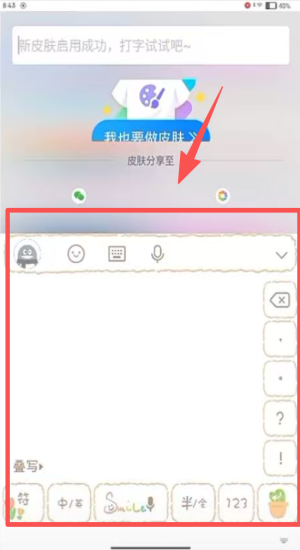 4、皮肤下载完成后,即可启用新皮肤,在输入界面可看到皮肤效果。