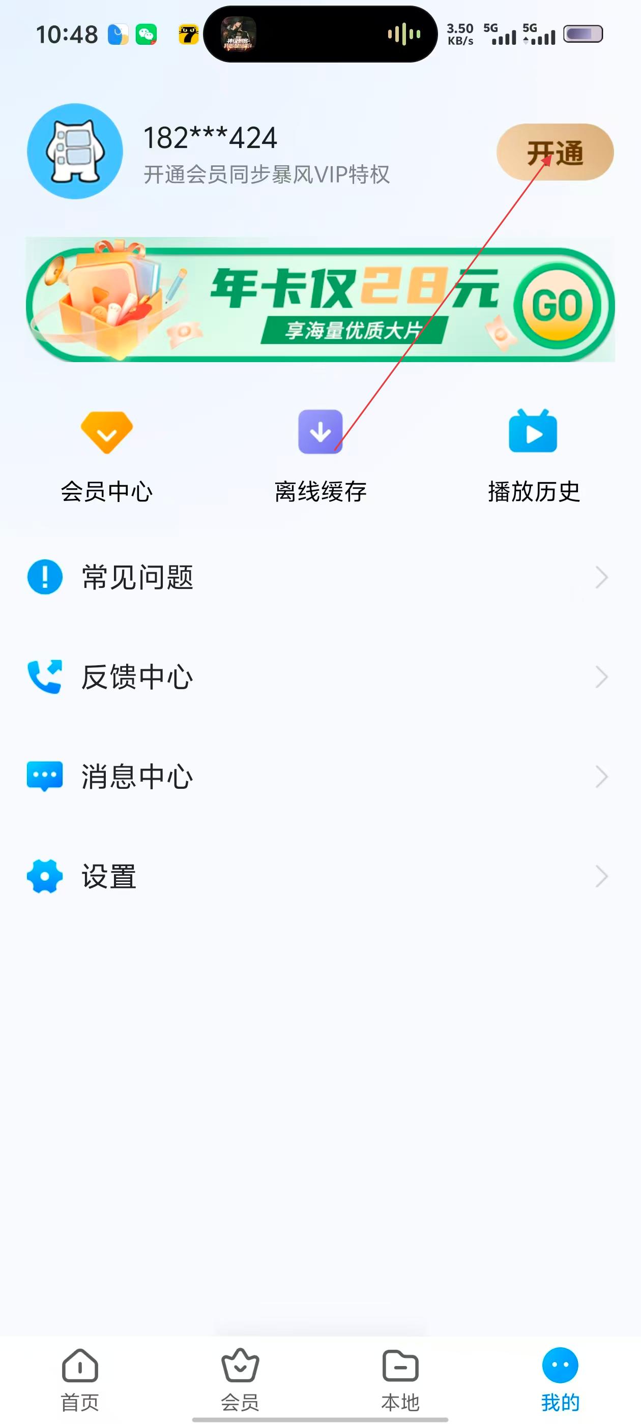 3、在个人页面,点击【开通】,进入会员开通界面。