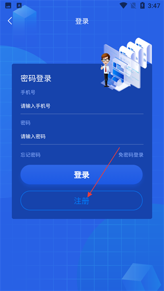 3、在登录界面点击“注册”按钮,进入账号注册页面。