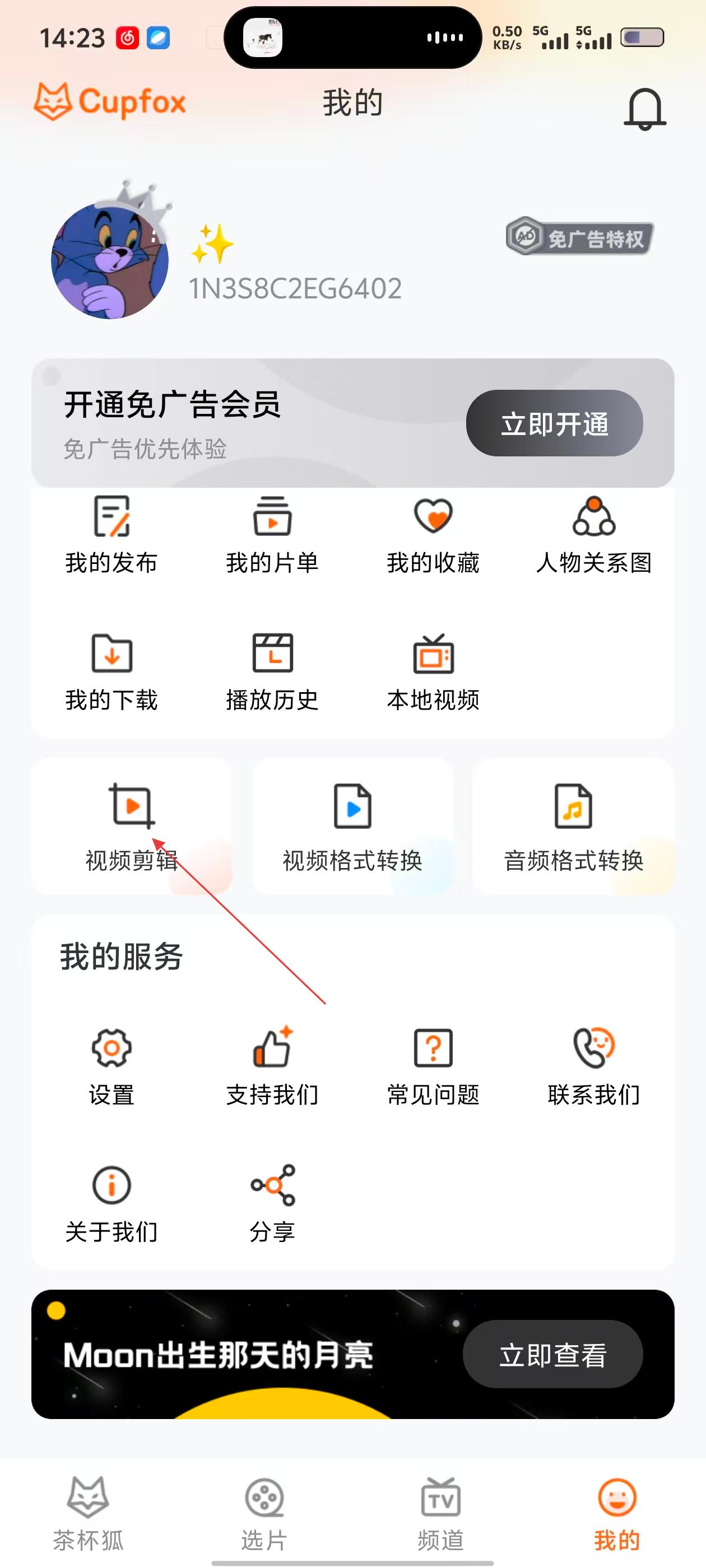 1、打开茶杯狐APP后,点击右下角【我的】,进入个人中心页面,开启视频剪辑流程。