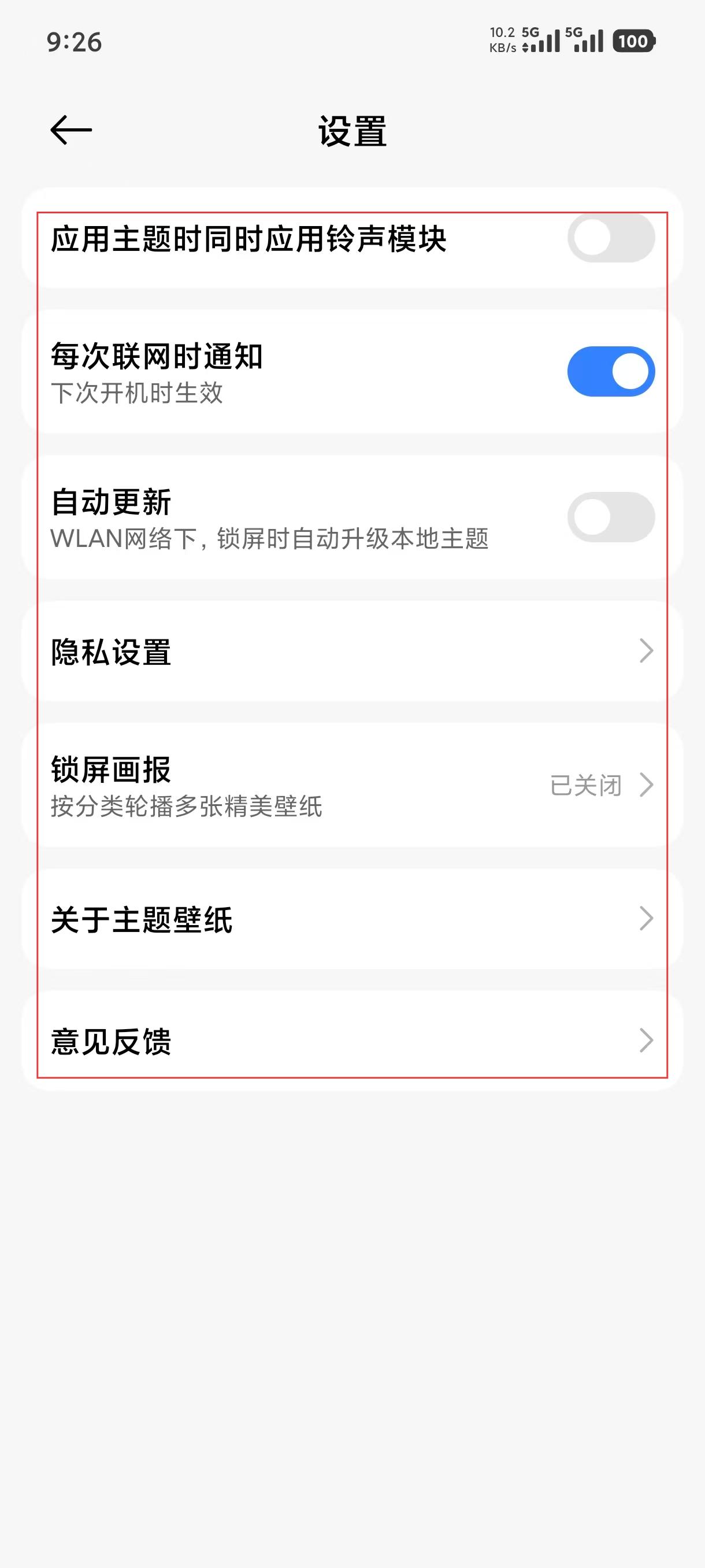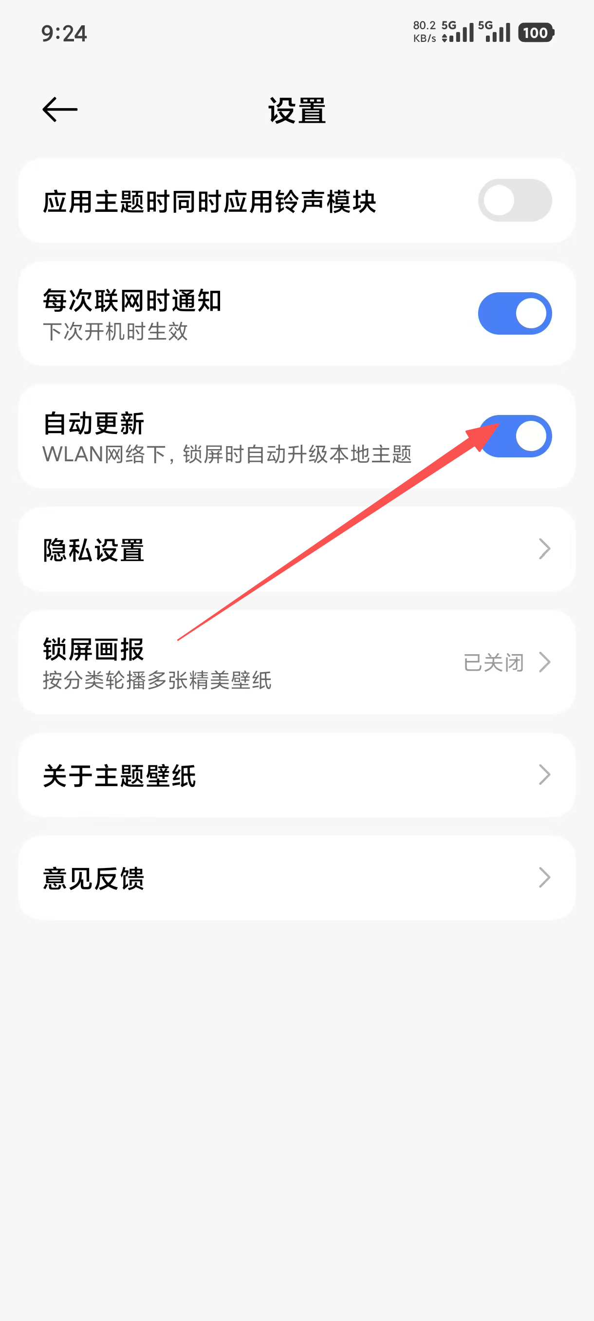 4、关闭后,APP将不再自动更新本地主题,可手动控制更新时间,避免锁屏时的自动操作。