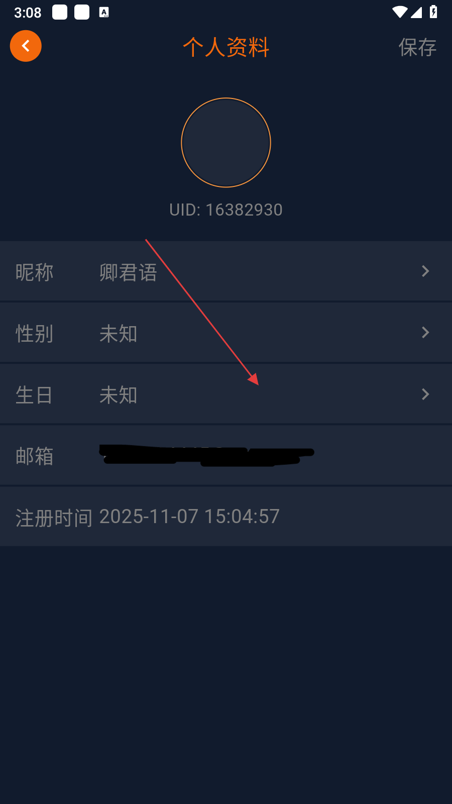 4、在个人资料页面,可对生日等信息进行设置,点击【保存】即可完成个人资料更新。